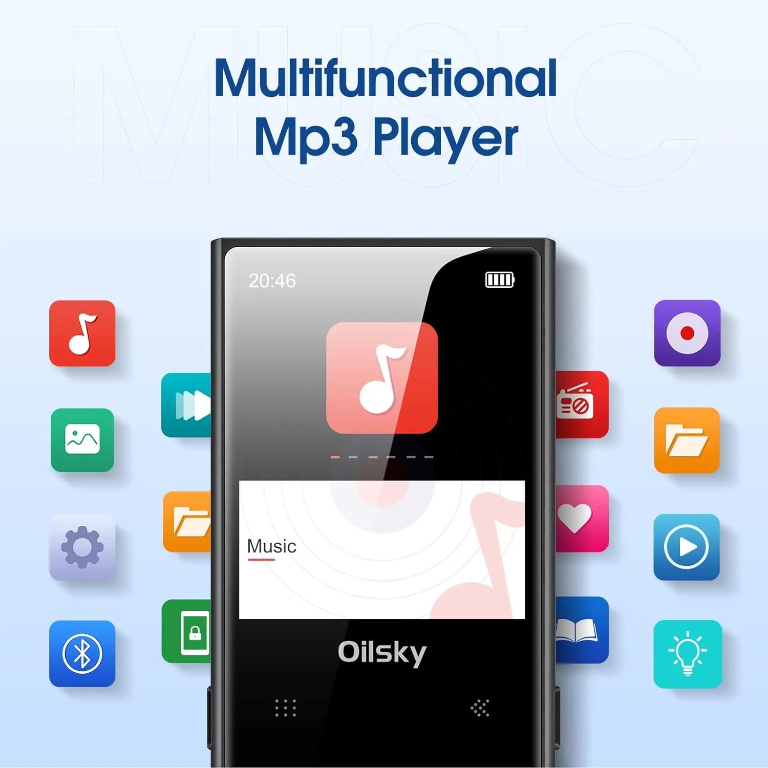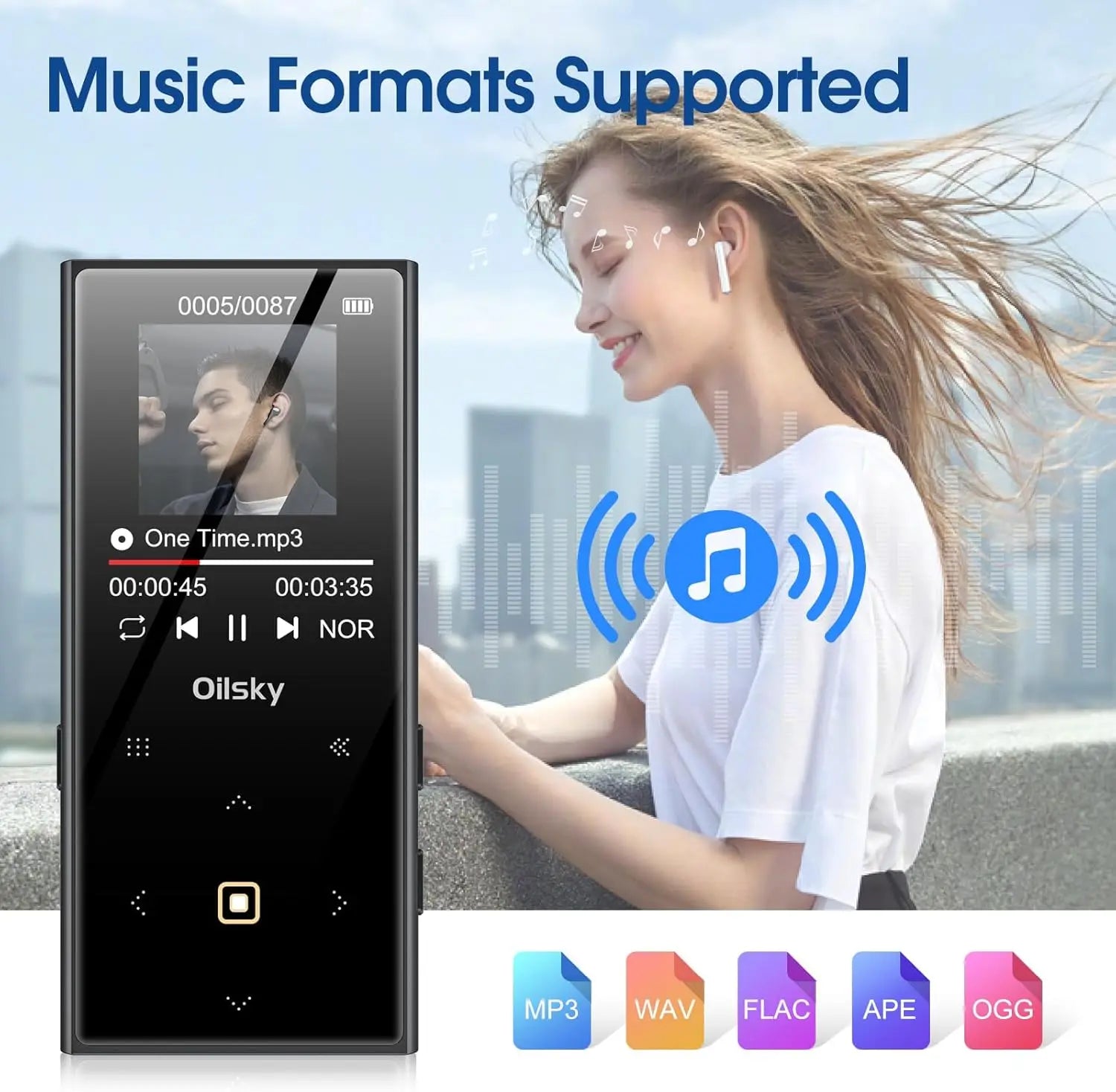 【HiFi Lossless Sound Quality】This Bluetooth MP3 player is equipped with a professional intelligent digital noise reduction chip. Support a variety of audio formats including MP3, WMA, WAV, FLAC, APE, and OGG.