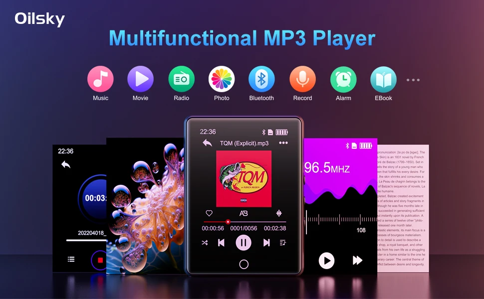 【2.8" Music Player & HiFi Lossless Sound 】Oilsky D26 fulll touch screen mp3 player is equipped with a professional intelligent digital noise reduction chip. Support a variety of audio formats including MP3, WMA, WAV, FLAC, APE, OGG, and ACC. With a 2.8-inch screen, you can have a wider viewing angle and better navigation.
